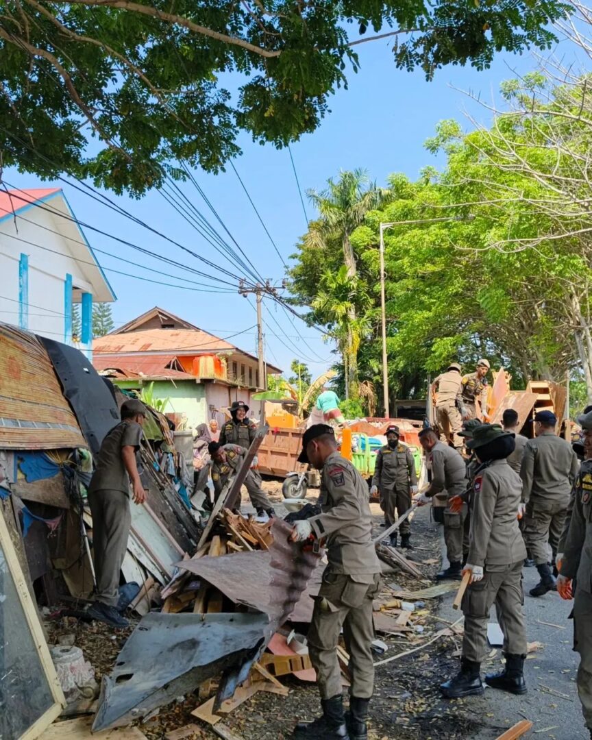 Jaga Trantibum, Satpol PP Tertibkan Bangunan Liar di Tepi Bandar Bekali Simpang Haru