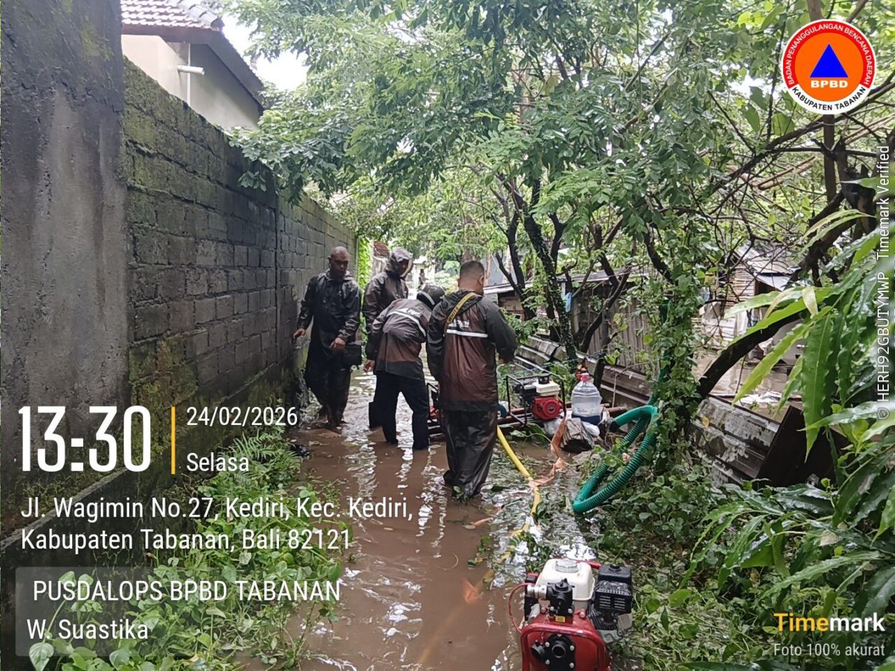 BPBD Kabupaten Tabanan, BPBD Kota Denpasar dan BPBD Kabupaten Badung telah berkoordinasi dengan instansi terkait, melakukan asesmen, evakuasi warga terdampak serta pompanisasi guna mempercepat surutnya genangan.