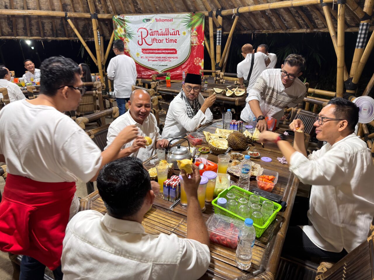 SUBANG, HALUAN – PT Trijaya Gemilang Mandiri (TGM) Telkomsel Cluster Sumayu (Subang – Indramayu) TAP Subang sebagai strategic business partner Telkomsel, mengadakan safari ramadan bersama Telkomsel dengan berbagai kegiatan positif. Diantaranya berbagi takjil gratis, buka bersama (bukber), berbagi santunan hingga durian party bersama seluruh tim, Kamis (12/3).