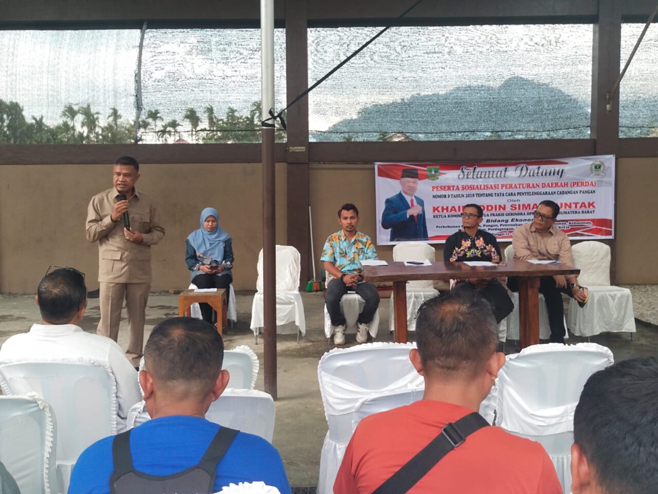 PASAMAN, HARIANHALUAN.ID – Ketua Komisi II DPRD Provinsi Sumatera Barat sekaligus Ketua Fraksi Gerindra, Khairuddin Simanjuntak, menggelar sosialisasi Peraturan Daerah (Perda) Nomor 9 Tahun 2019 tentang Tata Cara Penyelenggaraan Cadangan Pangan di Perak Cafe, Nagari Tanjung Beringin Utara, Kecamatan Lubuk Sikaping, Kabupaten Pasaman, Jumat (13/3/2026).