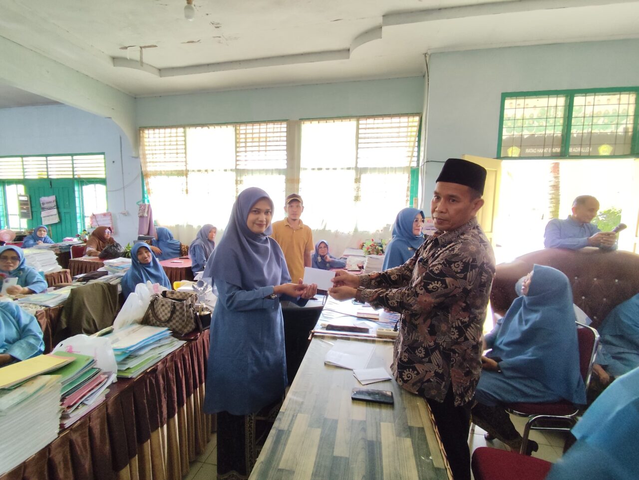 Penyerahan THR ini dipimpin Plt. Kepala MTsN 9 Tanah Datar Mulyandri, kepada 6 orang tenaga honorer serta dihadiri oleh seluruh guru dan tenaga kependidikan.
