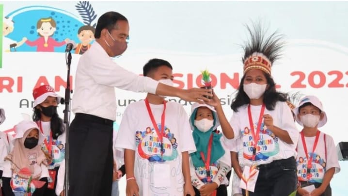 HARIANHALUAN.id – Presiden Joko Widodo menghabiskan akhir pekan bermain bersama anak-anak di Taman Teijsmann, Kebun Raya Bogor, Provinsi Jawa Barat, pada Sabtu, 23 Juli 2022. Hadir dalam Peringatan Puncak Hari Anak Nasional (HAN) tahun 2022, Presiden tiba sekira pukul 09.10 WIB dengan mengenakan sepeda dari Istana Kepresidenan Bogor.