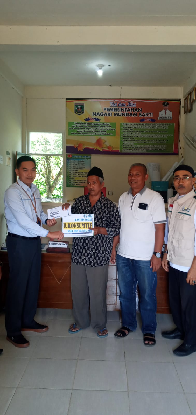 Simbolis penyerahan bantuan dilakukan di Kantor Wali Nagari Mundam Sakti oleh Pengurus YBM UP3 Solok Burhan didampingi Manager ULP Silungkang Seprianto, kepada masing-masing penerima manfaat.