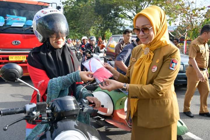 “Hari ini kita bagikan bendera merah putih kepada pengendara yang melintas di depan Balaikota,” sebut Sekda Andree didampingi Kepala Kantor Kesbangpol Tarmizi Ismail.