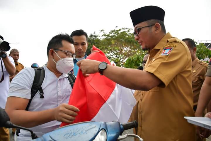 “Warga yang mendapat bendera agar dipasang di rumah masing-masing,” imbau Hendri Septa didampingi Sekdako Andree H. Algamar saat menyerahkan bendera kepada pengendara.