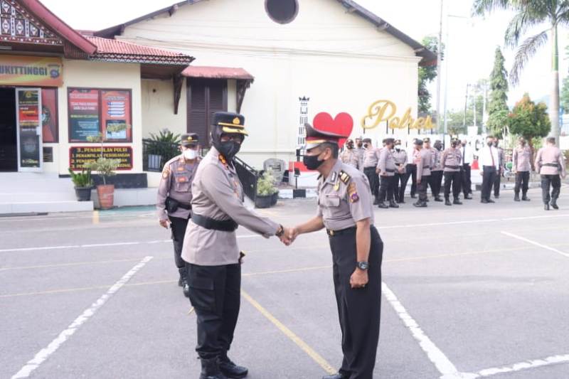 Upacara tersebut diikuti Wakapolres Bukittinggi, Kompol Suyatno, Kabag Ops Kompol Julianson, Kabag SDM Kompol Jefrizal Jarun, Kabag Ren Kompol Zahari Almi, para kasat, kapolsek, perwira dan staf Polres Bukittinggi. (*)