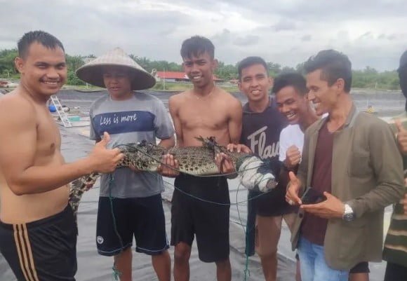 Rika mengatakan, buaya itu ditangkap saat pekerja hendak memanen udang. Saat itu, para pekerja mengeringkan air di dalam tambak tersebut.