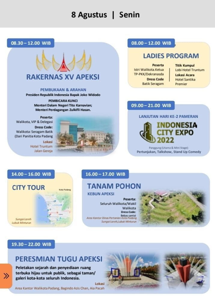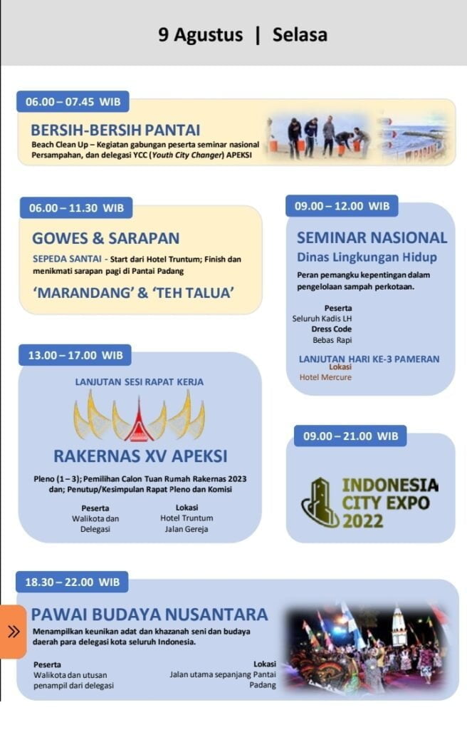 Berikut jadwal lengkap acara dan lokasi Rakernas Apeksi XV 2022 di Padang.