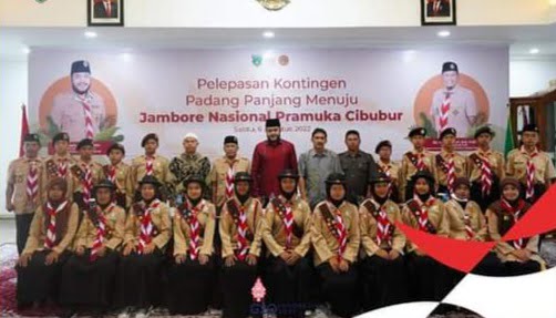 HARIANHALUAN.id – Wali Kota H. Fadly Amran, BBA Datuak Paduko Malano melepas kontingen Kwarcab 12 Pramuka Kota Padang Panjang menuju Jambore Nasional Pramuka di Cibubur Tahun 2022, di Pendopo Rumah Dinas Wali Kota, Sabtu (6/8).