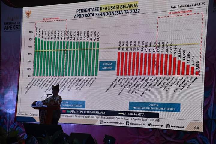 HARIANHALUAN.id – Kota Pariaman terbaik realisasi APBD di Sumatera Barat dan peringkat 6 se-Indonesia. Hal tersebut dipaparkan Menteri Dalam Negeri (Mendagri) RI, Tito Karnavian saat Penutupan Rakernas APEKSI XV Tahun 2022 di Ballroom Hotel Truntum Padang, Selasa (10/08/22) sore.