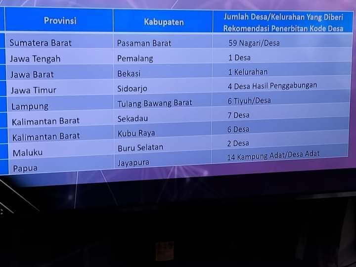 Kemudian di tingkat desa atau nagari yang mendapatkan kode desa akan diresmikan bersamaan dengan dilantiknya Pj wali nagari dari Aparatur Sipil Negeri (ASN).