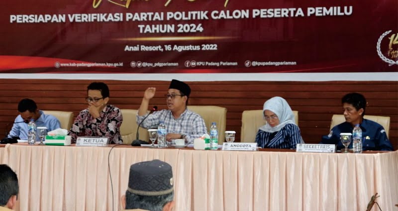 HARIANHALUAN.ID – Komisi Pemilihan Umum (KPU) Padang Pariaman melakukan pematangan persiapan verifikasi partai politik calon peserta pemilu Tahun 2024 di Anai Resort, Selasa (16/8/2022) menjelang dimulainya verifikasi faktual ditingkat Padang Pariaman.