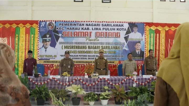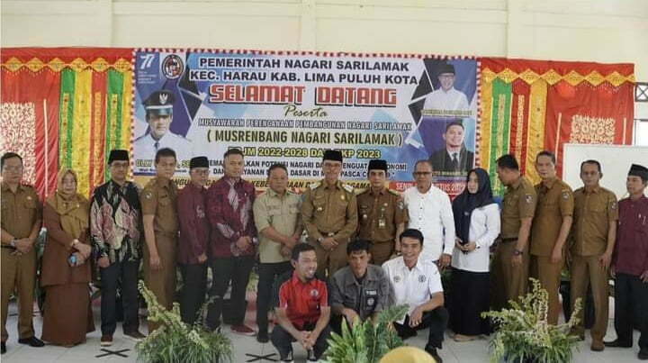 Bupati Limapuluh Kota Safaruddin Dt.Bandaro Rajo saat menghadiri Musyawarah Rencana Pembangunan (Musrenbang) tentang Rencana Pembangunan Jangka Menengah (RPJM) 2022-2028 Nagari Sarilamak di Aula BP4K, Senin (22/08/2022) mengatakan, mengapresiasi gerak cepat Nagari Harau dalam menyelenggarakan Musrenbang tingkat Nagari, sehingga menjadikan Nagari Sarilamak merupakan Nagari yang pertama melakukan RPJM Nagari di Limapuluh Kota.