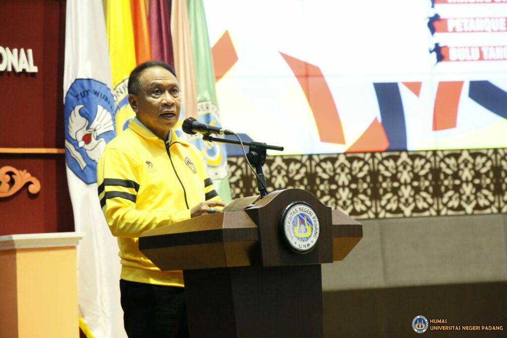 HARIANHALUAN.id — Menteri Pemuda dan Olahraga Republik Indonesia (Menpora RI), Prof. Dr. Zainudin Amali,S.E., M.M secara resmi melaunching POMNAS XVII tahun 2022 di Auditorium UNP, Kampus Air Tawar Padang, Kamis (25/08/22). Sementara itu, Mendibud Ristek Nadiem Anwar Makarim memberikan sambutan secara daring.