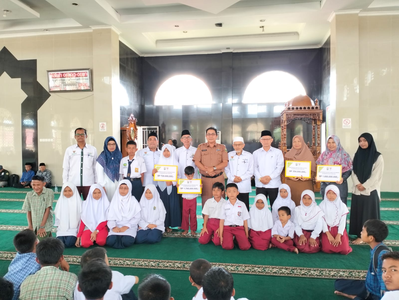 Sukardi menyebutkan, untuk pembagian beasiswa ini terdiri dari beasiswa untuk 3.600 orang pelajar SD/MI dengan nilai masing-masing Rp350 ribu per orang dengan total Rp1.7 miliar. Kemudian beasiswa untuk siswa SLTP/MTs untuk 1.500 orang dengan nilai sebesar Rp500 ribu per orang dengan total Rp720 juta, serta bantuan untuk 708 santri MDTA masing-masing Rp500 ribu per orang dengan total Rp354 juta.