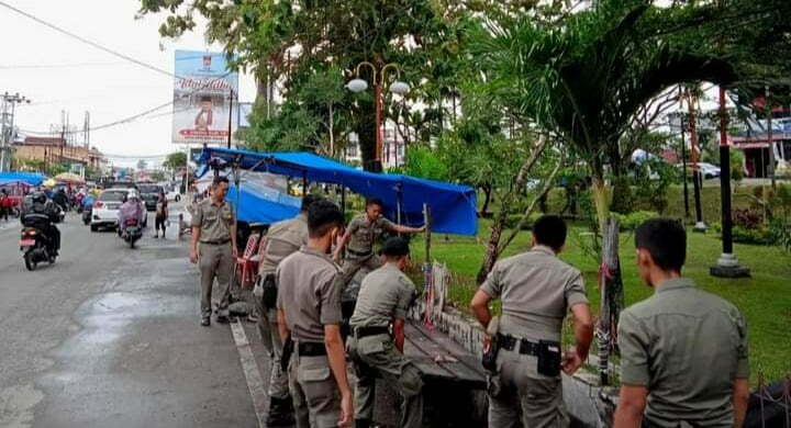 HARIANHALUAN.id – Satuan Polisi Pamong Praja (Satpol PP) Kota Padang mentertibkan sebanyak 13 lapak milik Pedagang Kaki Lima (PKL) yang berada di Taman Nanggalo, Surau Gadang, Kecamatan Nanggalo, Kota Padang.
