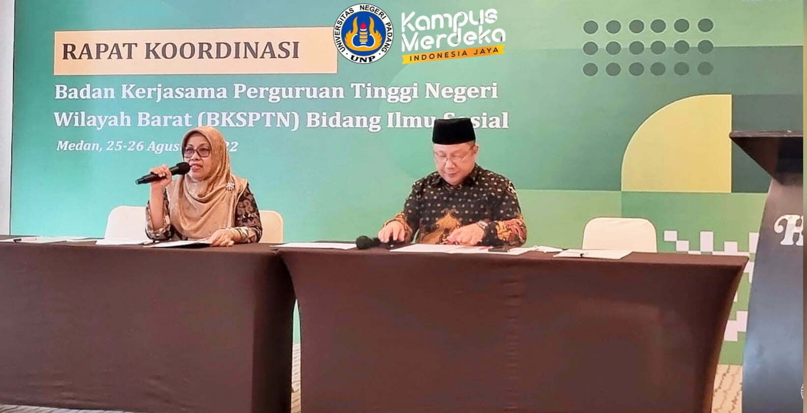 HARIANHALUAN.id – Dari Rapat Koordinasi Badan Kerja Sama Perguruan Tinggi Negeri Wilayah Barat (BKSPTN) Bidang Ilmu-ilmu Sosial yang berlangsung tanggal (25-26/8) di kampus Universitas Sumatera Utara (USU) Medan, Dekan Fakultas Ilmu Sosial Universitas Negeri Padang (UNP) Dr. Siti Fatimah, M.Pd, M.Hum terpilih sebagai Ketua dan sekretarisnya Dr. R. Dudy Heryadi Dekan FISIP UPNV Jakarta.
