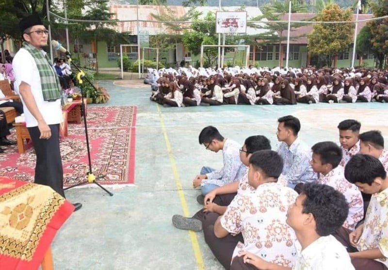 Di hadapan para siswa, Wako Hendri Septa memotivasi siswa agar tekun dan giat belajar, serta bentengi diri dari segala pengaruh negatif.