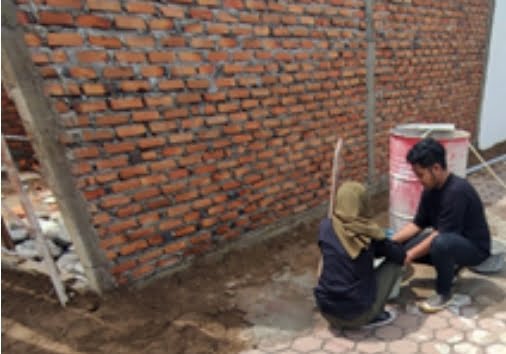 Salah satu upaya dalam menurunkan kerentanan bangunan adalah dengan meningkatkan kapasitas struktur penahan beban. Untuk itu, dinding bata selalu dilapisi dengan mortar untuk menambah kekuatannya.