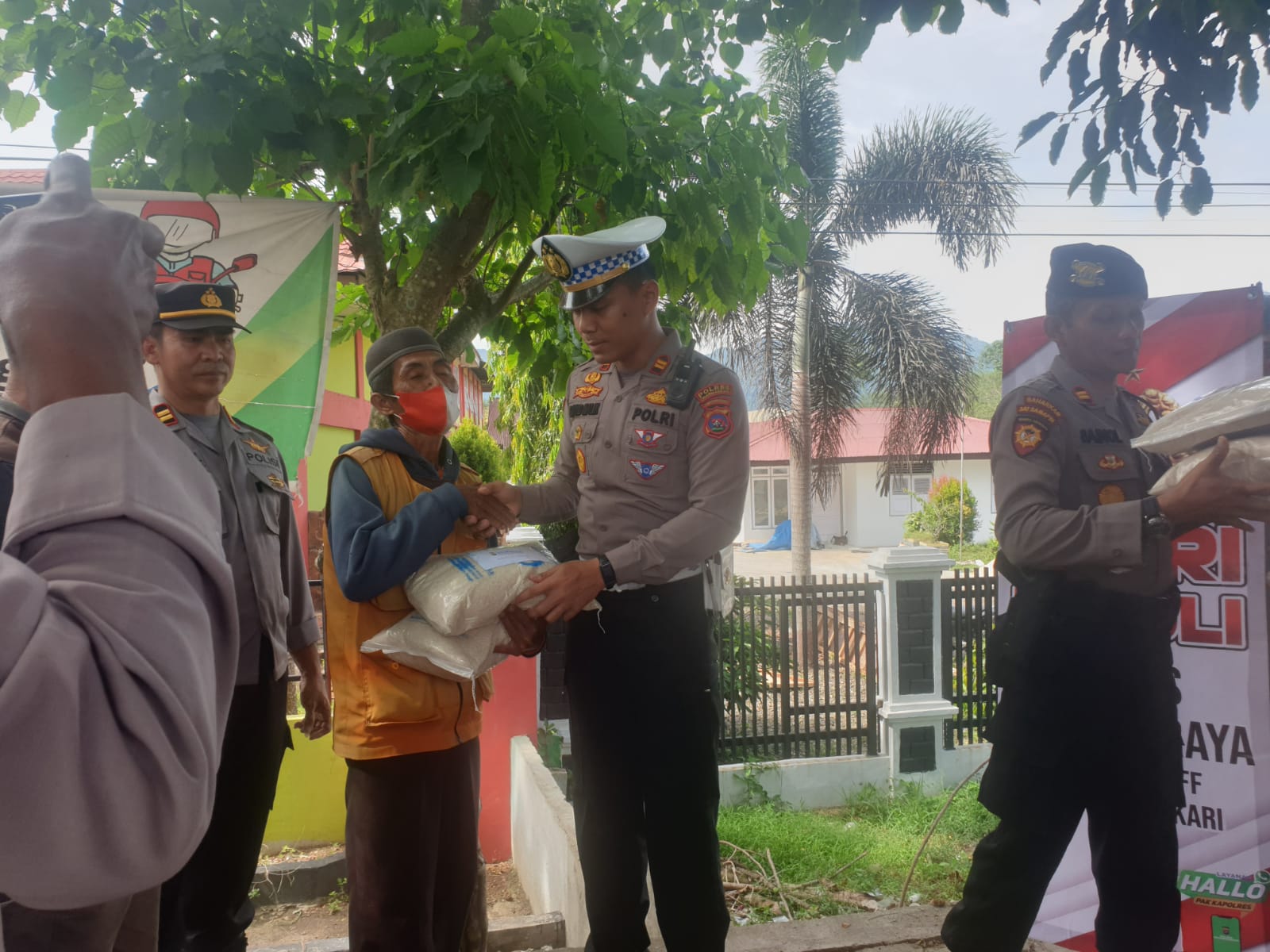 “Adapun paket yang tersedia ratusan paket sembako kepada masyarakat yang layak menerima. Bansos ini sebagai wujud kepedulian kepolisian terhadap masyarakat”, kata Iptu Sayyid Malik.