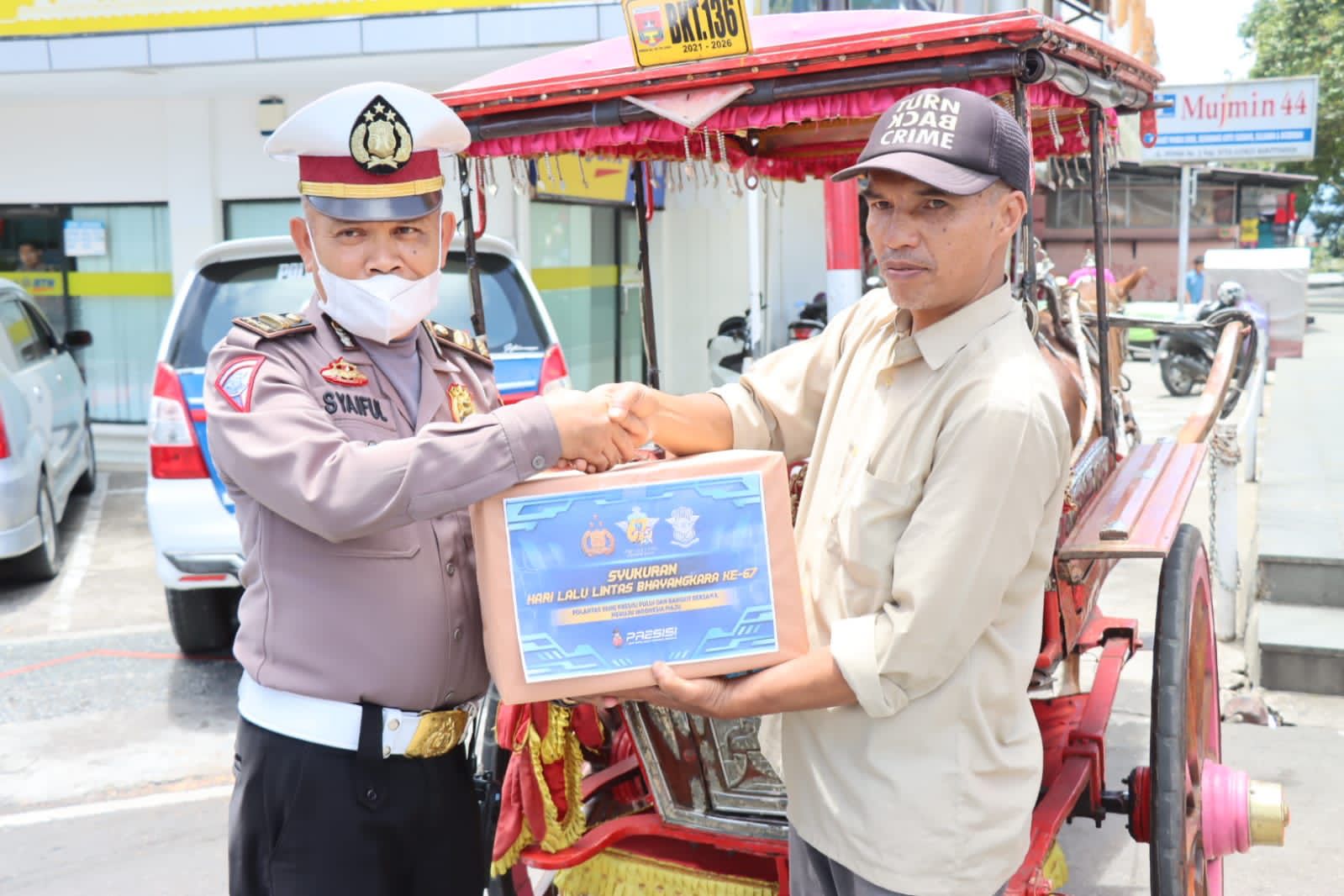 HARIANHALUAN.ID – Jajaran Satlantas Polres Bukittinggi membagikan paket sembako kepada petugas kebersihan dan kurir bendi di Kota Bukittinggi.