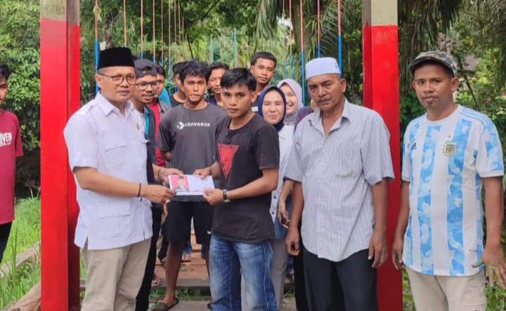 Ketua DPRD Pasbar Erianto yang juga Ketua DPC Gerindra setempat ketika menyalurkan aspirasi masyarakat untuk membangun jembatan. OSNIWATI