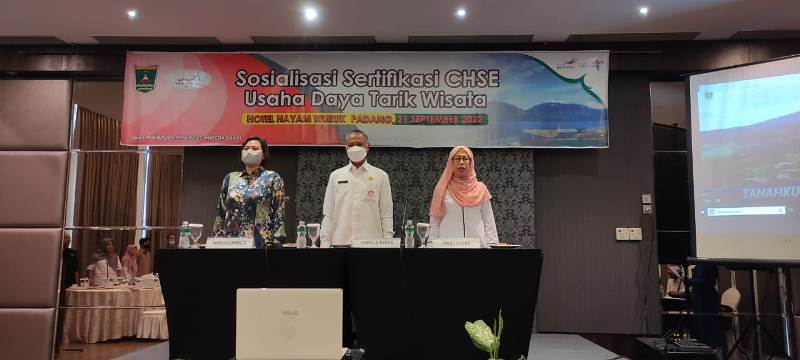 HARIANHALUAN.ID – Guna menarik kunjungan wisatawan ke Sumatra Barat (Sumbar), Dinas Pariwisata Sumbar kembali menggelar sosialisasi sertifikasi CHSE, Rabu (21/9/2022).