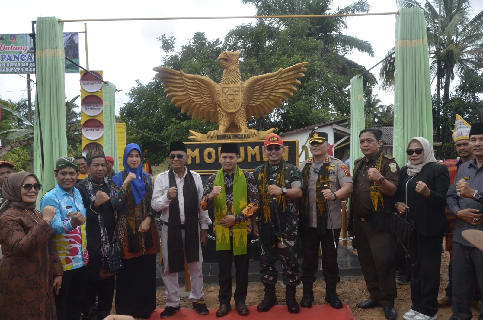 Forkopimda Kabupaten Sijunjung berfoto bersama didepan tugu Garuda Kampung Pancasila, Kamis (22/9) di Kenagarian Kunangan Parik Rantang Kecamatan Kamang Baru.