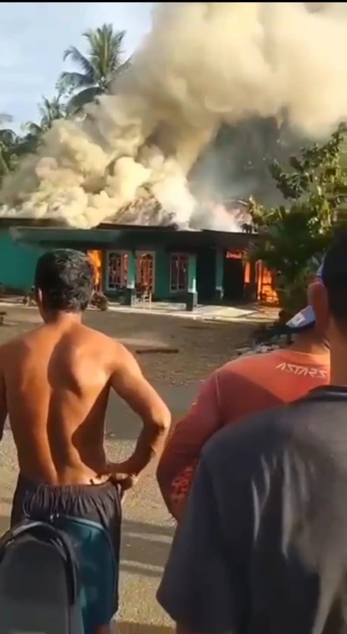 Warga setempat sempat membantu untuk memadamkannya tetapi karena cuaca panas dan ada angin, api melalap bagian atas rumah dan rumahpun ludes terbakar.