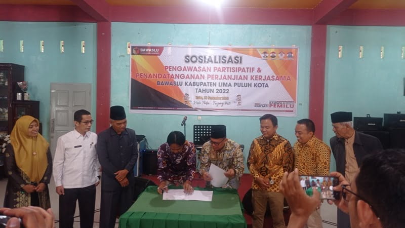 HARIANHALUAN.ID – Badan Pengawas Pemilihan Umum (Bawaslu) Kabupaten Lima Puluh Kota melakukan penandatanganan kerja sama dengan Kementerian Agama (Kemenag) daerah setempat, untuk meningkatkan pengawasan partisipatif dalam Pemilihan Umum (Pemilu) 2024 mendatang.