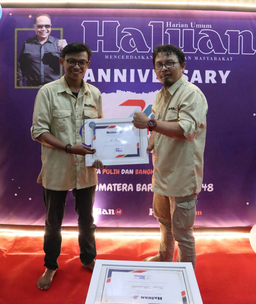 Penganugerahan HUT Haluan ke-74 diantaranya, diberikan kepada Yan Syafri sebagai karyawan terbaik, Muhammad Fauzi sebagai wartawan paling produktif dalam pemberitaan. Yesi Deswita sebagai wartawan paling produktif dalam penjualan, dan Taufik Hidayat perwakilan Haluan Limapuluh Kota sebagai wartawan daerah paling produktif dalam penjualan.