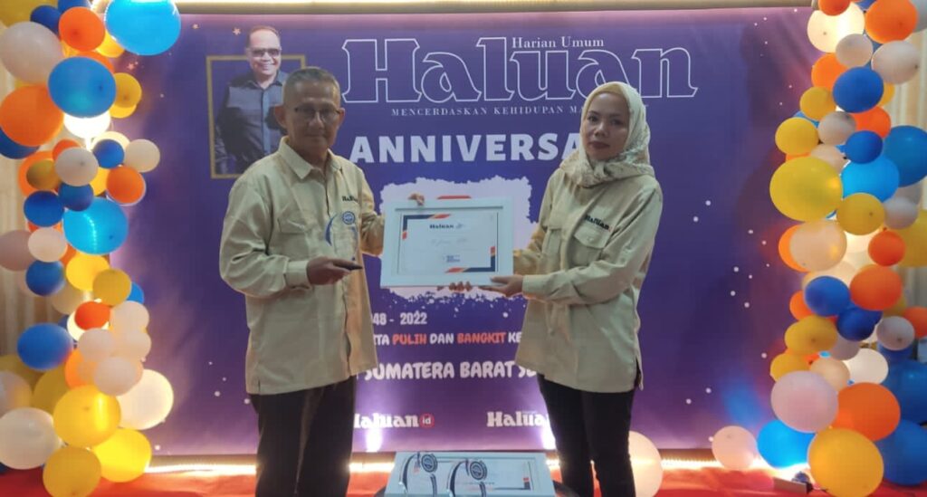HARIANHALUAN.id – Peringatan HUT Haluan ke-74 tahun 2022 makin bermakna dengan pemberian penghargaan kepada sejumlah karyawan berprestasi dan karyawan memasuki masa purna bakti.
