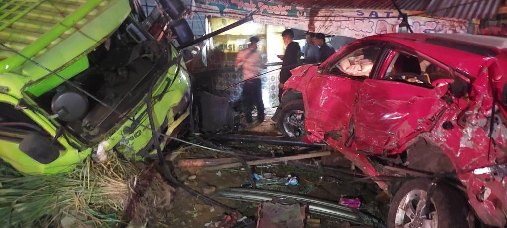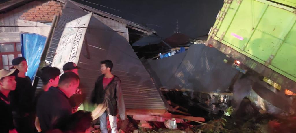 Kecelakaan tersebut melibatkan satu unit truk dan tiga unit mobil roda empat, satu unit sepeda, bahkan satu unit rumah dan satu unit kedai ikut menjadi korbannya.