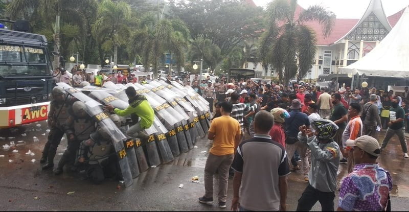 Mendekati siang, tensi unjuk rasa meninggi berujung kericuhan antara massa pengunjuk rasa dengan pihak kepolisian yang mengawal jalannya aksi demo. Meski harus bekerja keras menangani sekitar 400 orang pengunjuk rasa yang cenderung beringas, gabungan personel Polres Lima Puluh Kota dan dibantu Batalyon B Brimob Polda Sumbar di bawah pengawasan langsung Kapolres Lima Puluh Kota, AKBP Ricardo Condrat Yusuf dan Danyon B Brimob Polda Sumbar, Kompol Jendrival terlihat disiplin mengatasi situasi yang memanas.