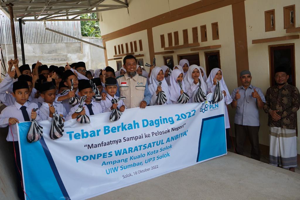 HARIANHALUAN.id – Yayasan Baitul Maal (YBM) PLN Unit Pelaksana Pelayanan Pelanggan (UP3) Solok salurkan 100 paket daging untuk Santri Dhuafa di Pondok Pesantren Waratsatul Anbiya, Ampang Kualo, Kota Solok pada Selasa (18/10).