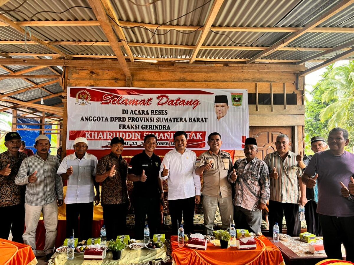 HARIANHALUAN.ID – Berbagai aspirasi masyarakat Padang Nunang, Nagari Lubuk Layang, Kecamatan Rao Selatan, diserap saat anggota DPRD Provinsi Sumatra Barat, Fraksi Gerindra, Khairuddin Simanjuntak melakukan reses, Minggu (23/10/2022).