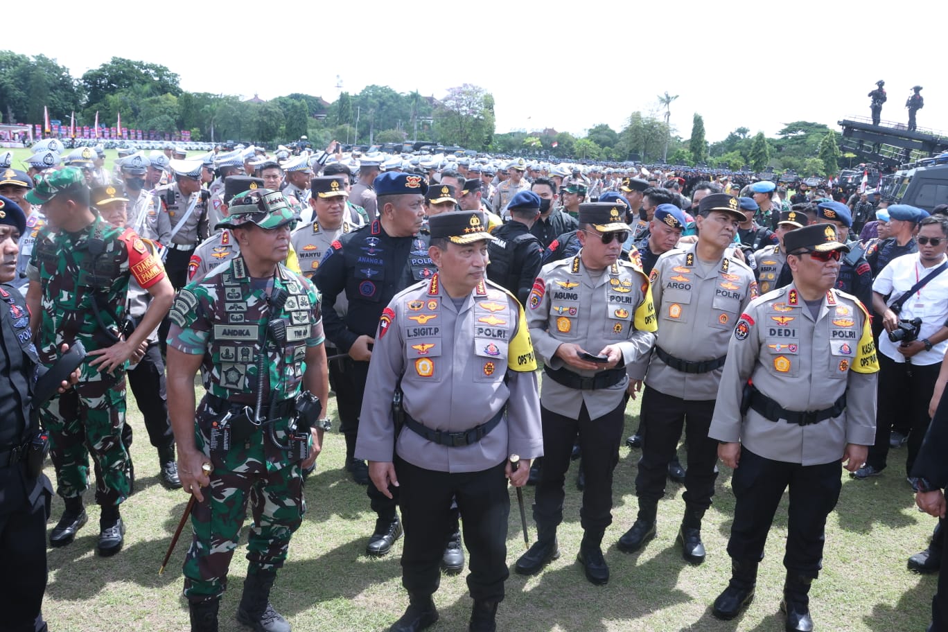 HARIANHALUAN.ID – Kapolri Jenderal Listyo Sigit Prabowo memimpin apel gelar pasukan Operasi Puri Agung 2022 dalam rangka pengamanan KTT G20 di Lapangan Renon, Denpasar, Bali, Senin (7/11/2022).