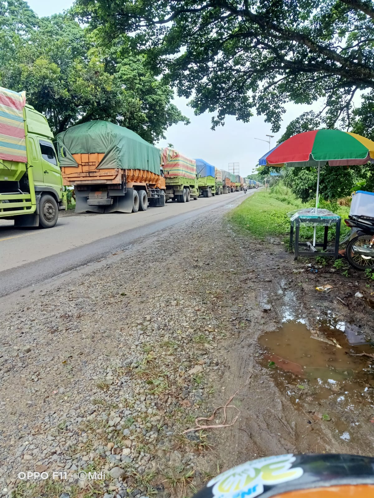HARIANHALUAN.ID – Kemacetan panjang terjadi di jalan lintas Sumatra (Jalinsum) Gunung Medan, Rabu (9/11/2022) pagi. Pasalnya, ada truk rusak di badan jalan.