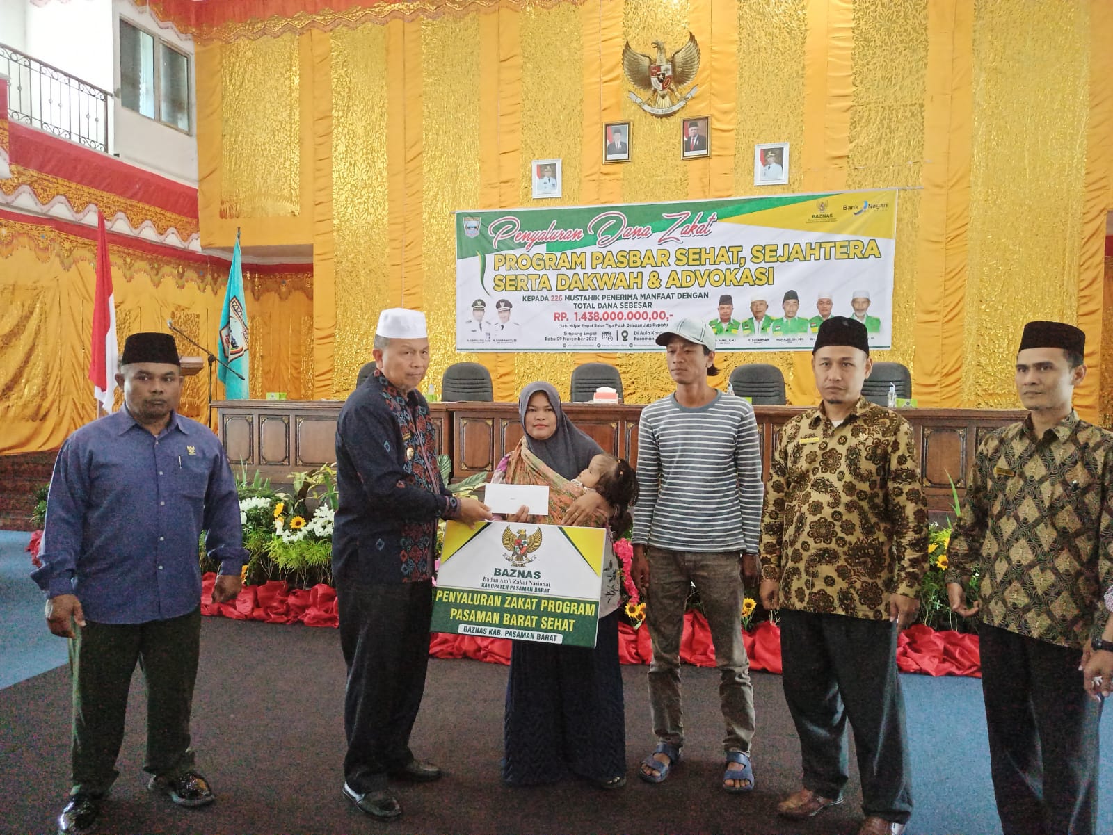 HARIANHALUAN.ID – Sebanyak Rp1.438.000.000 dana zakat Kabupaten Pasaman Barat disalurkan oleh Badan Amil Zakat Nasional (Baznas) setempat kepada 226 mustahik dalam program Pasbar Sehat, Pasbar Sejahtera, Dakwah dan Advokasi di aula kantor bupati, Rabu (9/11/2022).