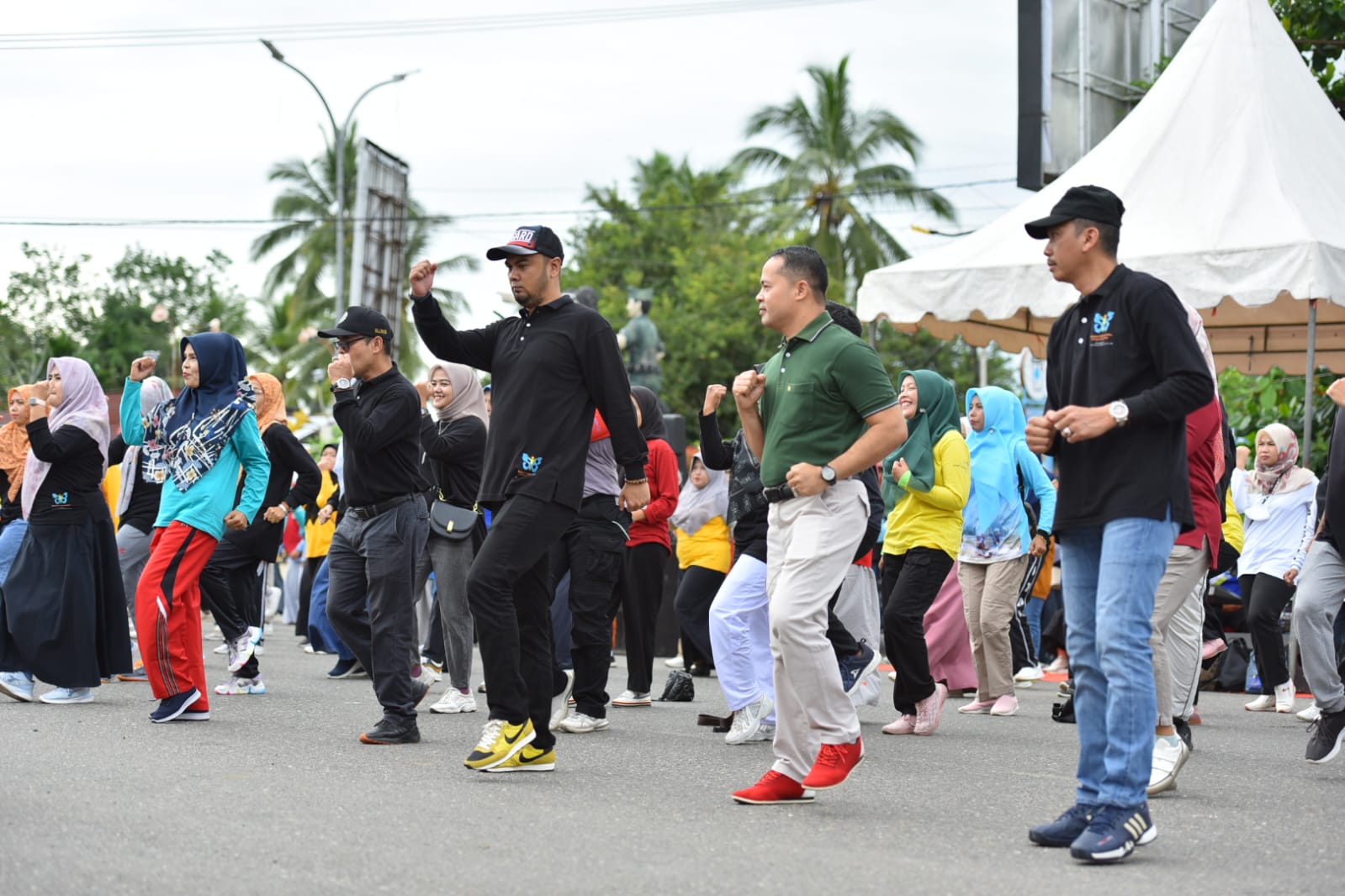 Pada kegiatan senam massal tersebut juga melibatkan tenaga ASN dan THL di jajaran Pemkab Sijunjung, serta disemarakkan dengan penarikan undian dengan berbagai hadiah yang menarik.