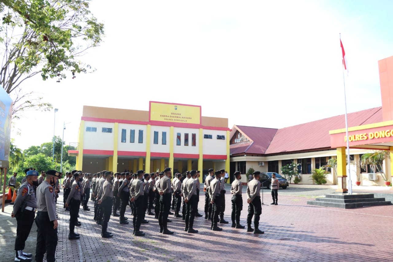 Kapolres AKBP Muhammad Yudie Sulistiyo menyambut kedatangan personel BKO dari Satuan Direktorat Samapta Polda Sulteng, di Mapolres Donggala, Jalan Ebony No. 01 Donggala