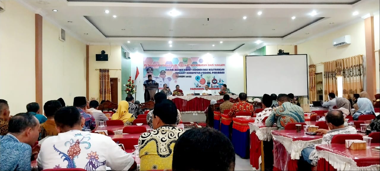 Acara rapat koordinasi tersebut di selenggarakan oleh Dinas Bapelitbangda Kabupaten Padang Pariaman yang dihadiri oleh 17 kecamatan dan 103 Wali Nagari Padang Pariaman. Pertemuan dalam rangka menggali potensi dan inovasi daerah Kabupaten Padang Pariaman menuju Kabupaten smart city.