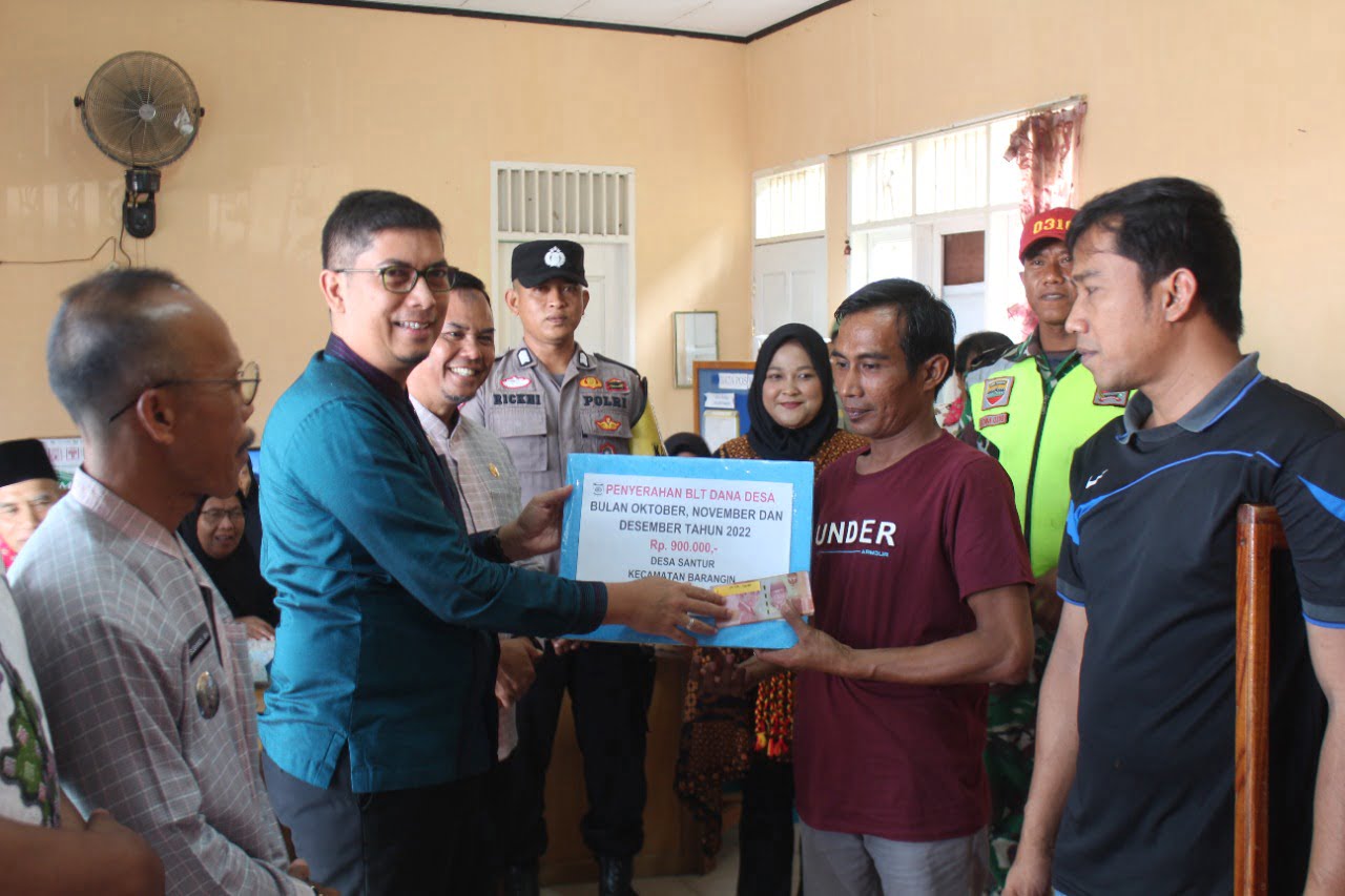 Bertempat di Aula Kantor Desa Santur, penyerahan Bantuan Langsung Tunai Dana Desa tersebut diserahkan secara simbolis oleh Walikota Sawahlunto, Deri Asta, SH didampingi Efrianto, S.Sos, MM Kepala Dinsos PMDPPA, Subandi, SH Camat Kecamatan Barangin, Sri Adianto Kepala Desa Santur, didampingi oleh Babinsa, Bhabinkamtibmas, Pendamping Desa, Pendamping Lokal Desa, BPD, Perangkat Desa, Kepala Dusun, PSM dan disaksikan oleh hampir seluruh Keluarga Penerima Manfaat (KPM) Bantuan Langsung Tunai Dana di Desa Santur.