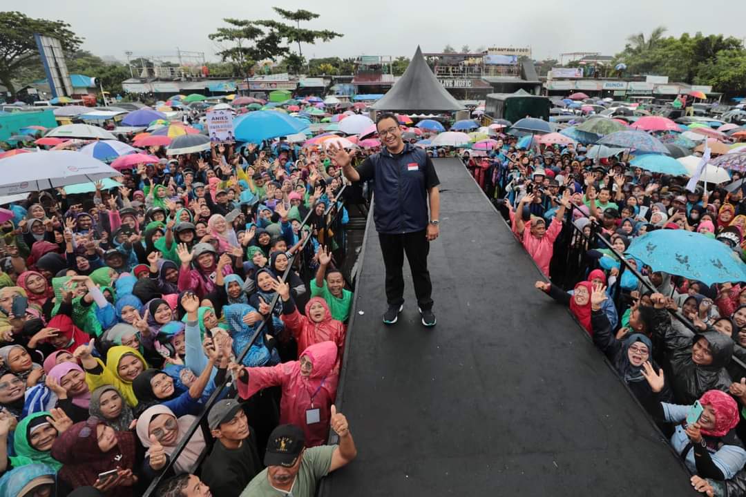 Luar biasanya, meski disertai rintik hujan, tak mengurangi antusiasme massa untuk mengikuti jalan sehat, bukan saja untuk doorprize, melainkan untuk bertemu Anies Baswedan.