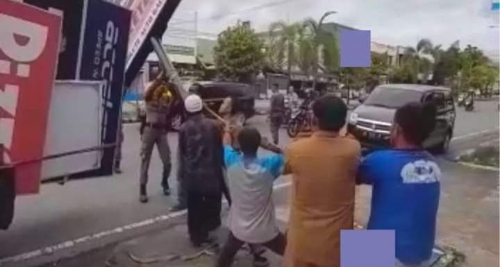 HARIANHALUAN.id – Puluhan papan iklan dan Reklame dibongkar Satpol PP Padang pada Senin (5/12)2022.