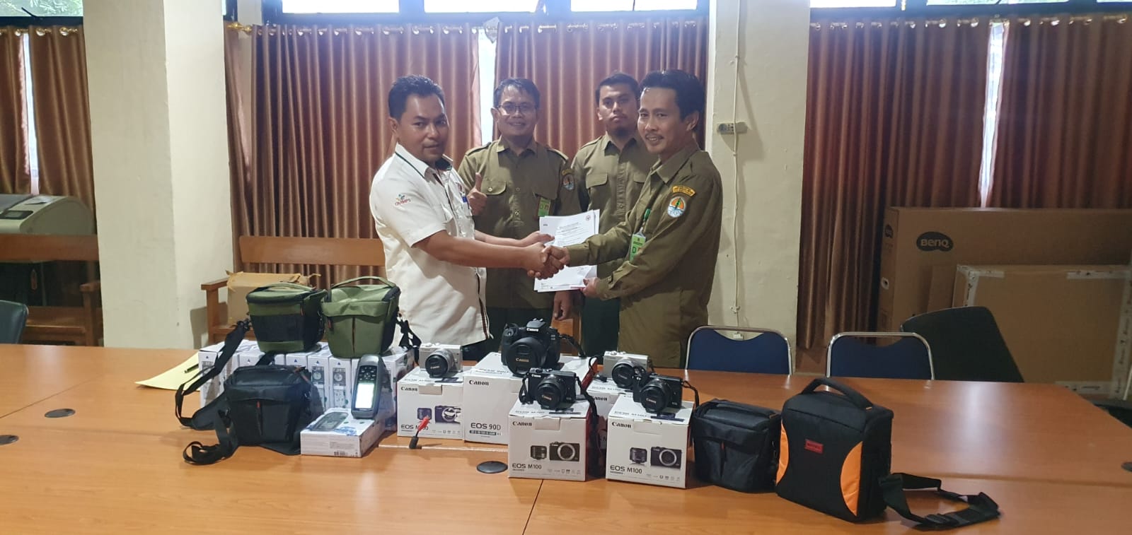 Anita juga menyampaikan bahwa untuk kamera yang diserahkan terdiri dari satu kamera jenis Canon 90D, dan empat kamera jenis Canon M100. Selain kamera dan GPS, juga diserahkan 12 papan pengumuman untuk dipasang di area Kawasan SM Tarusan Arau Hillir.