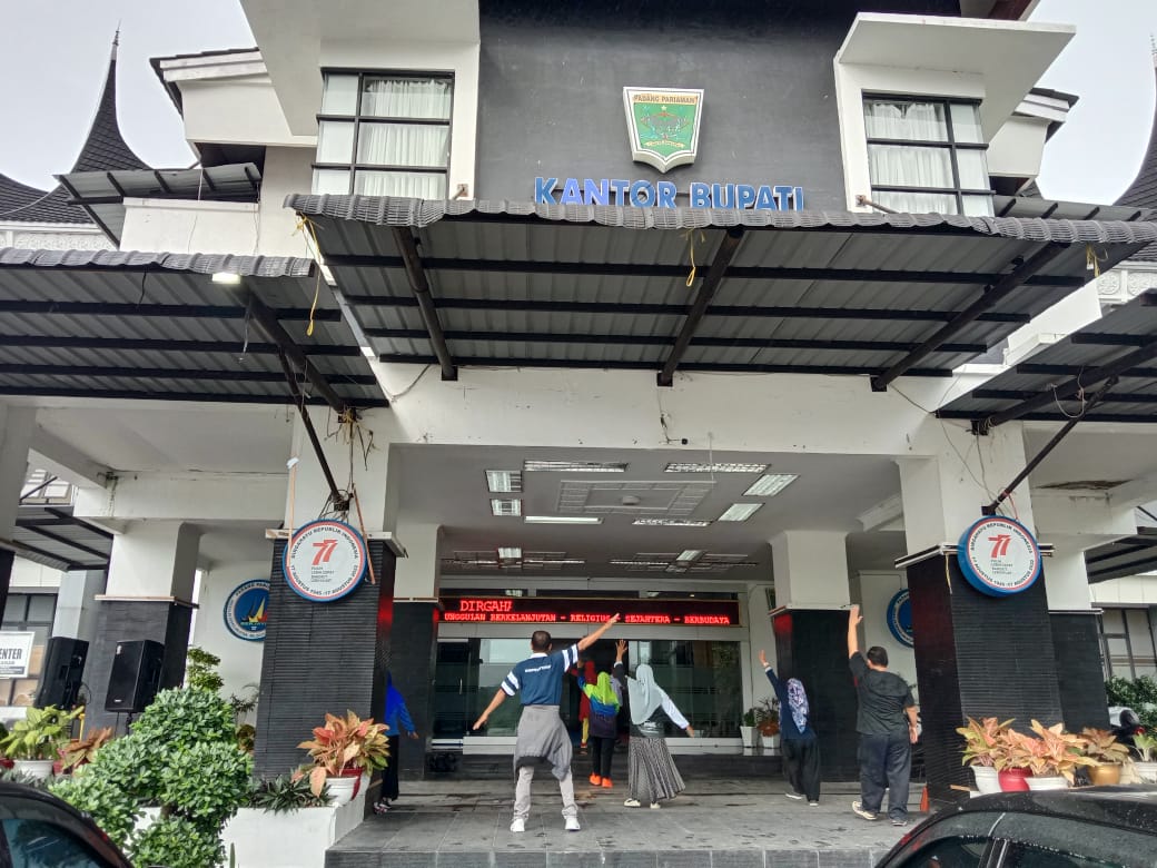 HARIANHALUAN.id – Meski hujan, Aparatur Sipil Negara (ASN) Kantor Bupati Padang Pariaman Provinsi Sumatera Barat tetap menggelar kegiatan senam sehat bersama di lobi kantor, Rabu (14/12).