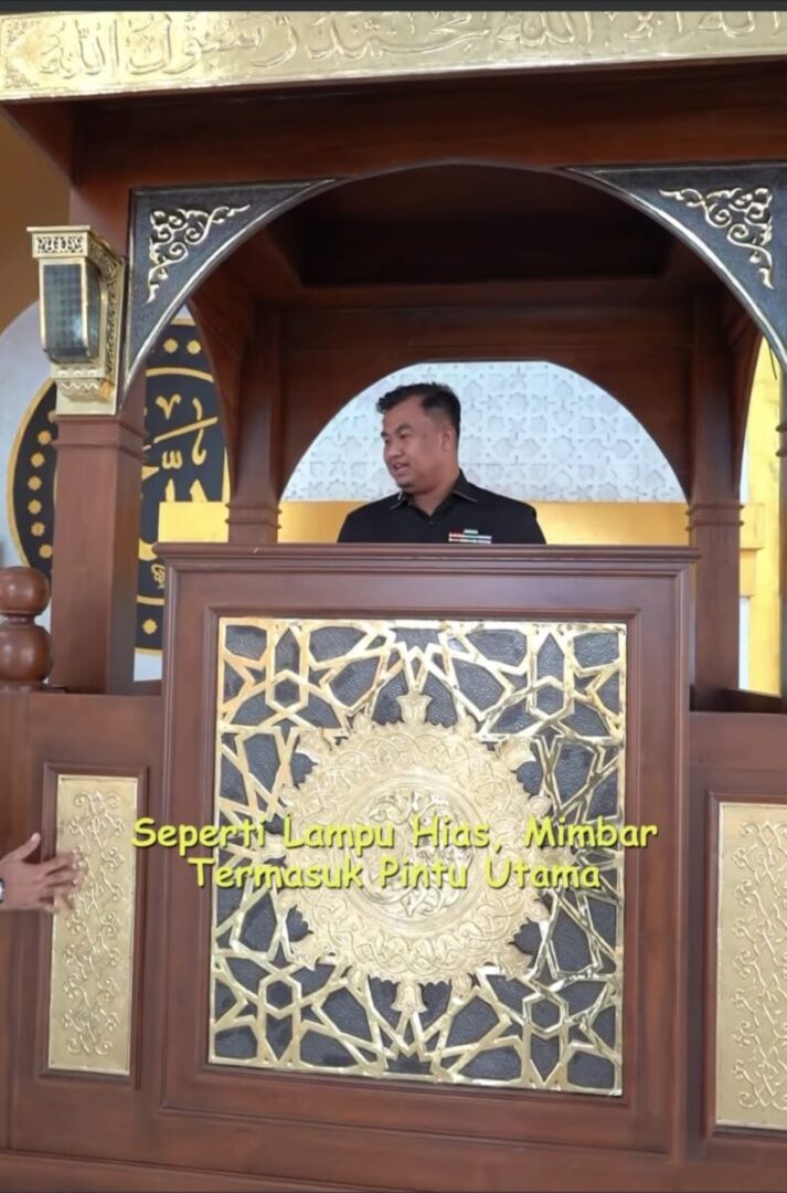 Dikatakannya, ia sengaja melihat langsung progres pembangunan mesjid tersebut khususnya finishing interior mesjid, seperti pintu utama, mimbar serta hiasan interior mesjid.