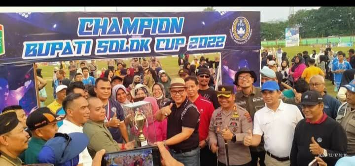 HARIANHALUAN.id – Bupati Solok Capt. H. Epyardi Asda, Dt. Sutan Majo Lelo, M.Mar menghadiri sekaligus menutup secara resmi Bupati Solok Cup dalam pertandingan final antara Kecamatan X koto Singkarak melawan Kecamatan Gunung Talang, Sabtu (17/12/2022).