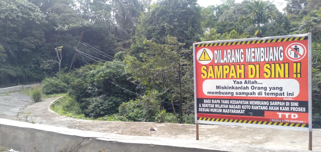 Wali Nagari Koto Rantang Novri Agus Parta Wijaya mengatakan, pemasangan pengumuman larangan membuang sampah sembarangan itu, untuk menegaskan kembali agar masyarakat disiplin dengan tidak membuang sampah sembarangan, terlebih bagi oknum-oknum yang dari luar Nagari Koto Rantang.